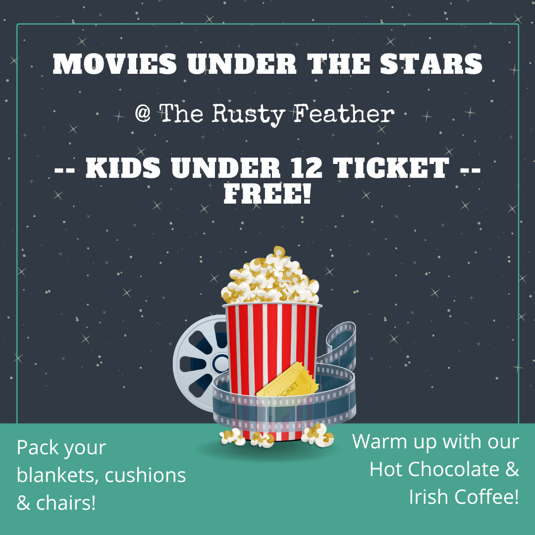 Licensed premises – no drinks, coolers, outside food or picnic baskets to be brought onsite. Kindly support the restaurant. Table service with our regular menu will be available in the movie area.